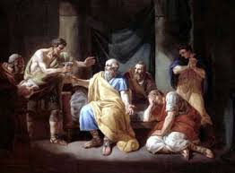 πίνει το κώνειο αποδεχόμενος την καταδικαστική ετυμηγορία των δικαστών ενώ ο