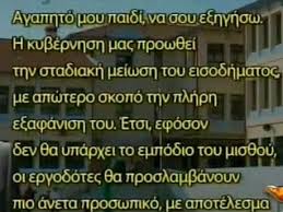 Τι κάνετε κύριε Υπουργέ; Το ακριβώς αντίθετο. Αυξάνετε τη φορολογία στις ασθενείς οικονομικά και κοινωνικά τάξεις, το εισόδημα ολοένα και περισσότερο μειώνεται, χωρίς αυτά να έχουν ουσιαστικά αποτελέσματα, εκτός από το να βυθιζόμαστε περισσότερο στην ύφεση. Τι συνέπειες έχουν αυτές οι ενέργειες; Καταστρέφετε τα όνειρα χιλιάδων νέων (όπως και τα δικά μου στην παρούσα φάση) εξαναγκάζοντάς τους να μεταναστεύουν στο εξωτερικό για ένα καλύτερο μέλλον. Εκτοξεύετε τα ποσοστά ανεργίας, υποβαθμίζοντας την ποιότητα ζωής των πολιτών, ενώ δεν έχουν καμία ευθύνη για τη διαμορφωθείσα κατάσταση, για την οποία αποκλειστικά υπεύθυνο είναι το πολιτικό σύστημα.